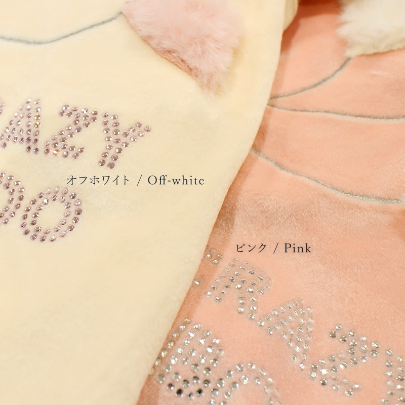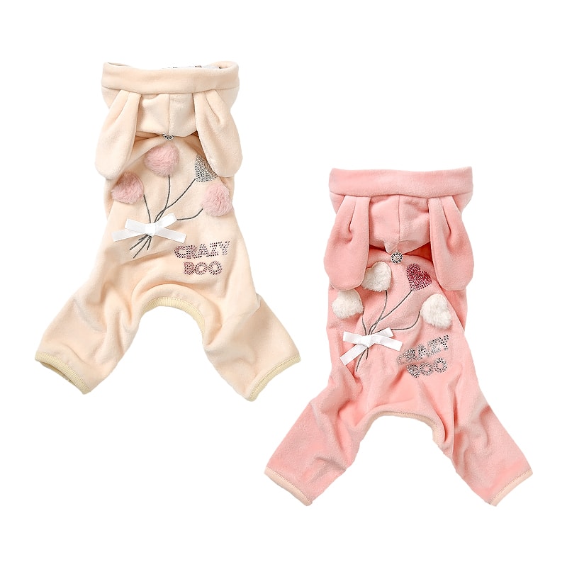 【5月6日以降の発送です】CRAZYBOO / クレイジーブーうさ耳ベロア オールインワン(ロンパース)XLサイズオフホワイト / ピンク犬服 / 犬の服 / ドッグウェアあったか 秋冬コレクション小型犬