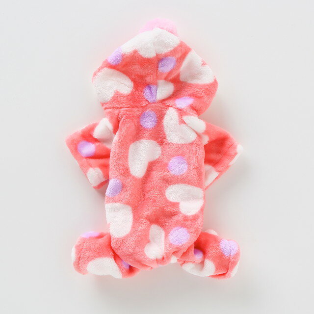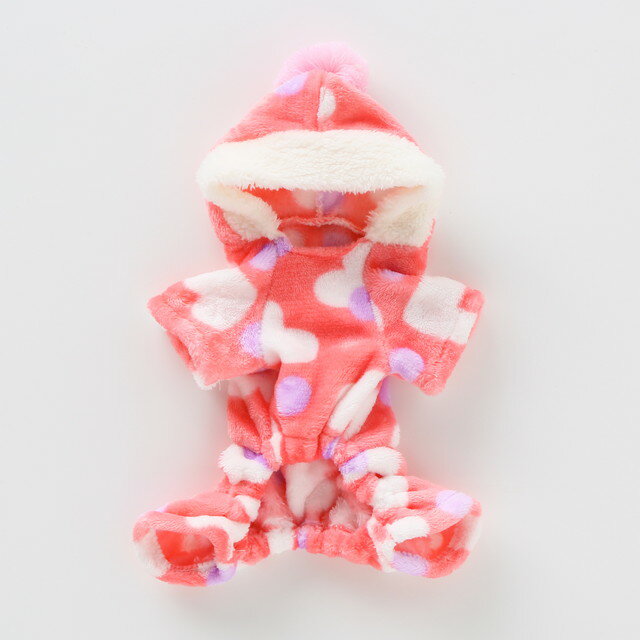 ドット×ハート フリースロンパースドッグウェア】【犬 服【送料無料/ドッグウェア/犬/服/秋冬/ウェア/可愛い/おしゃれ/ペット/つなぎ/ロンパース/カジュアル/ふわもこ】