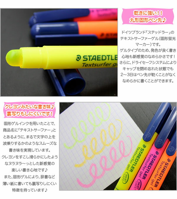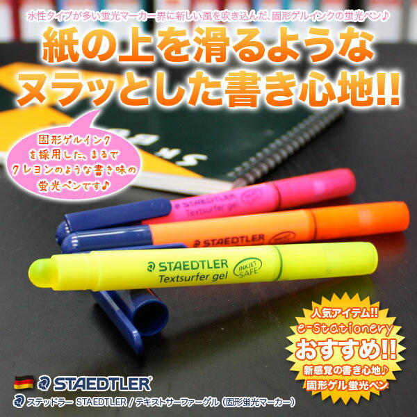 【メール便可 10個まで】ステッドラー STAEDTLER / テキストサーファーゲル (固形蛍光マーカー) イエロー・ピンク・オレンジ・ブルー・グリーン (264)【蛍光ペン デザイン おしゃれ 輸入 ドイツ】