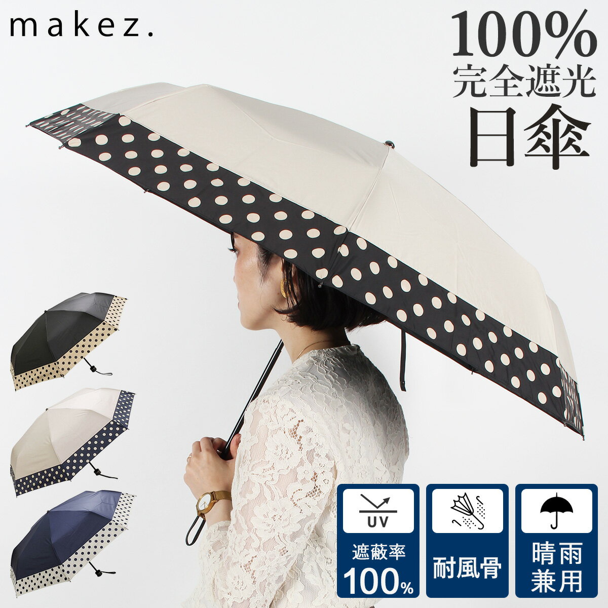makez. マケズ 日傘 折りたたみ 完全遮光 遮光率100% 軽量 遮光 晴雨兼用 UVカット レディース 雨傘 傘 遮熱 折り畳み 雨具 55cm ドット切替 紫外線対策 耐風骨傘 ブラック ホワイト ベージュネイビー 黒 白 JT0F8962 [予約 5月上旬 追加入荷予定]